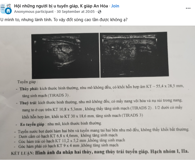 U mình to, nhưng lành tính. To vậy đốt sóng cao tần được không ạ? Link câu hỏi: https://www.facebook.com/groups/hoinhungnguoibiutuyengiapkgiapanhoa/posts/1312359190678769/ U mình to, nhưng lành tính. To vậy đốt sóng cao tần được không ạ? Link câu hỏi: https://www.facebook.com/groups/hoinhungnguoibiutuyengiapkgiapanhoa/posts/1312359190678769/