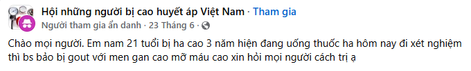 Em nam 21 tuổi bị ha cao 3 năm hiện đang uống thuốc ha hôm nay đi xét nghiệm thì bs bảo bị gout với men gan cao mỡ máu cao xin hỏi mọi người cách trị ạ Link câu hỏi: https://www.facebook.com/share/p/1MdBtZA8ud/ Em nam 21 tuổi bị ha cao 3 năm hiện đang uống thuốc ha hôm nay đi xét nghiệm thì bs bảo bị gout với men gan cao mỡ máu cao xin hỏi mọi người cách trị ạ Link câu hỏi: https://www.facebook.com/share/... Read more