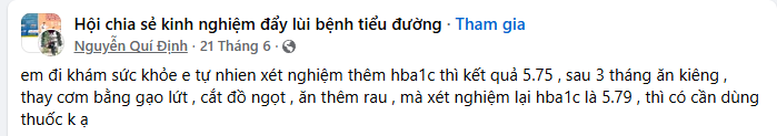 em đi khám sức khỏe e tự nhien xét nghiệm thêm hba1c thì kết quả 5.75 , sau 3 tháng ăn kiêng , thay cơm bằng gạo lứt , cắt đồ ngọt , ăn thêm rau , mà xét nghiệm lại hba1c là 5.79 , thì có cần dùng thuốc k ạ Link câu hỏi: https://www.facebook.com/share/p/1Diwt31AQV/ em đi khám sức khỏe e tự nhien xét nghiệm thêm hba1c thì kết quả 5.75 , sau 3 tháng ăn kiêng , thay cơm bằng gạo lứt , cắt đồ ngọt , ăn thêm rau , mà xét nghiệm lại hba1c là 5.79 , thì có cần dùng thu... Read more