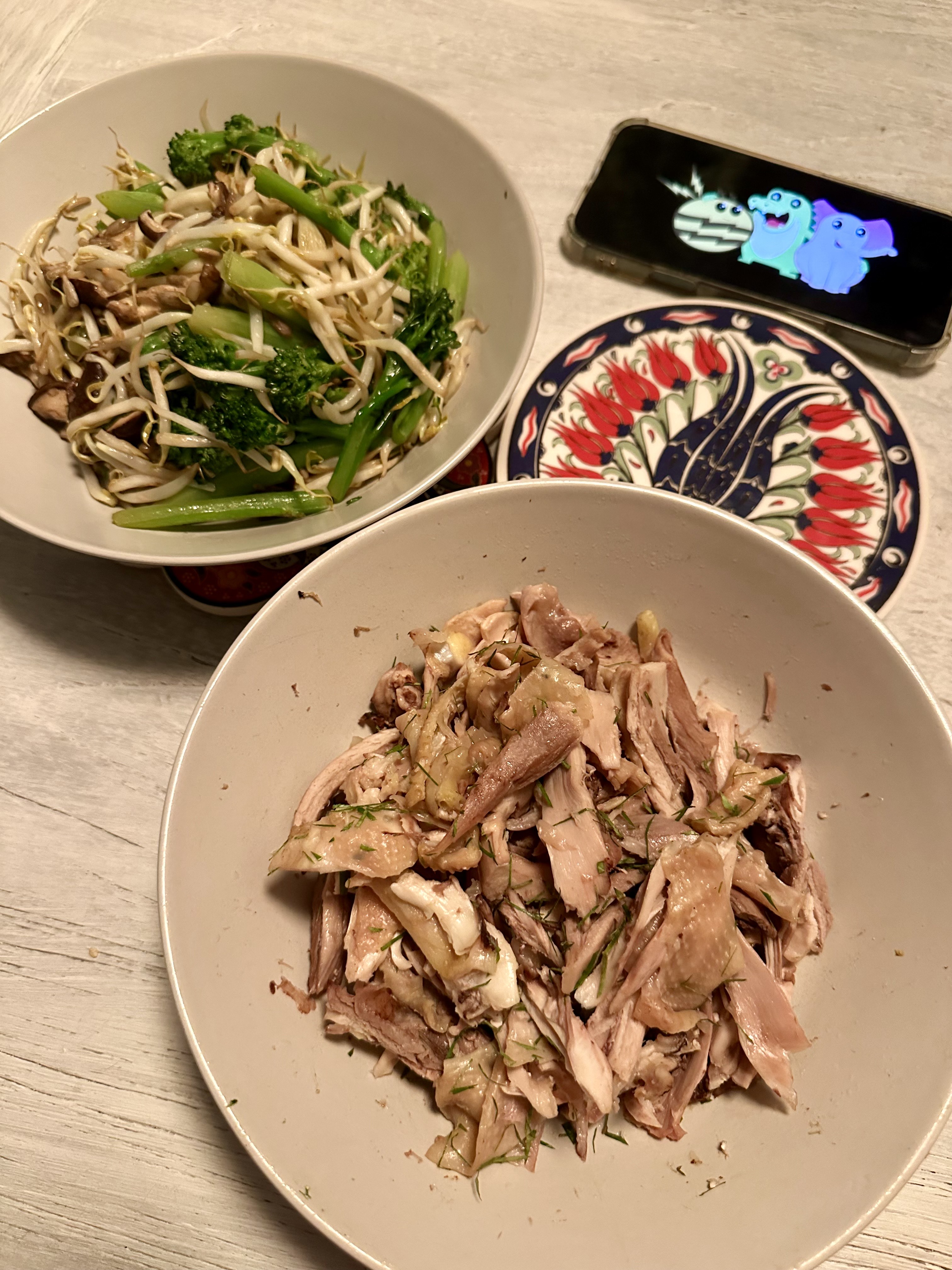 1) Boiled Vietnamese hometown chicken with ginseng and garnished with lemon leaf, NO SALT OR MSG OR SEASONING ADDED