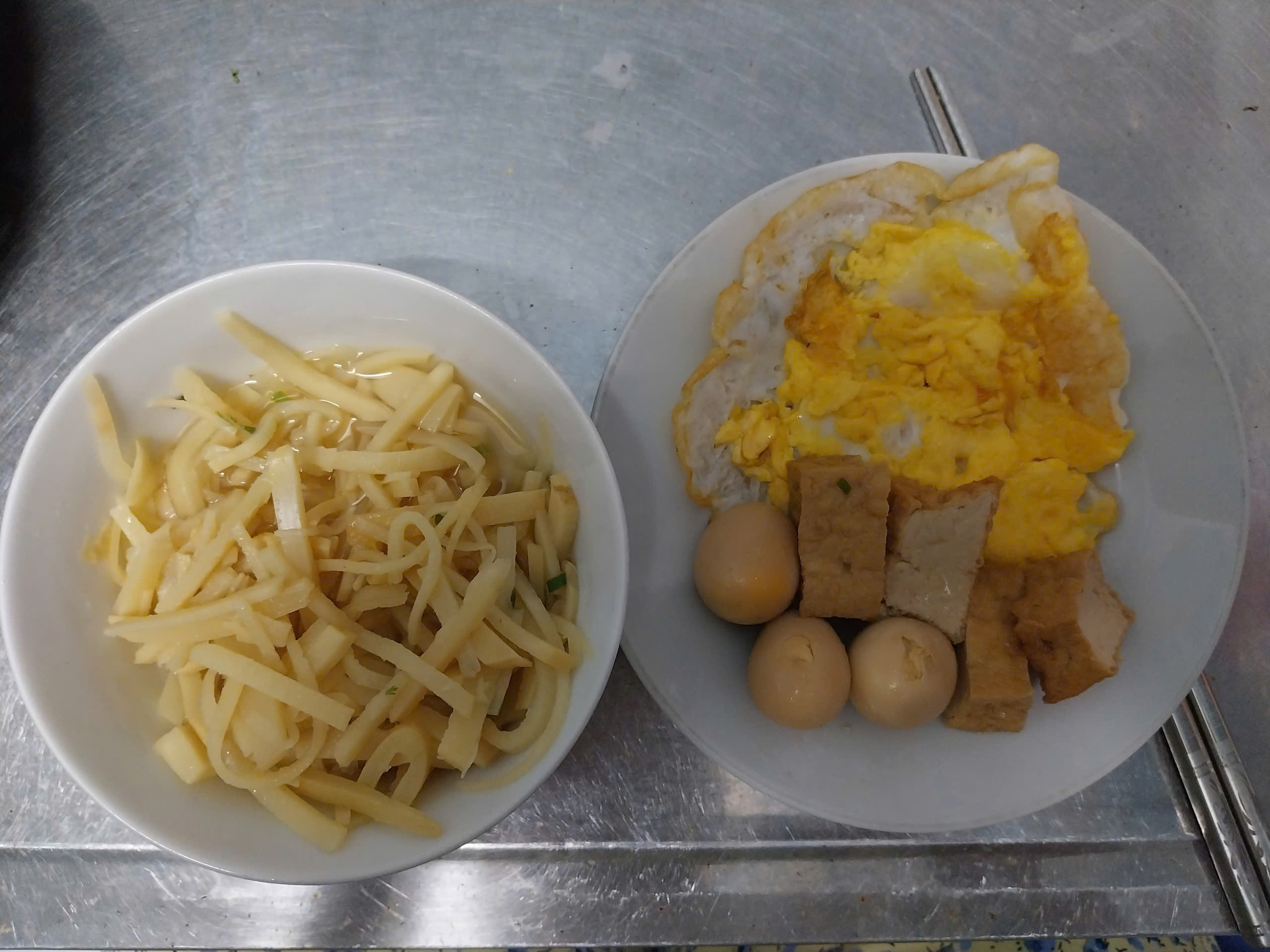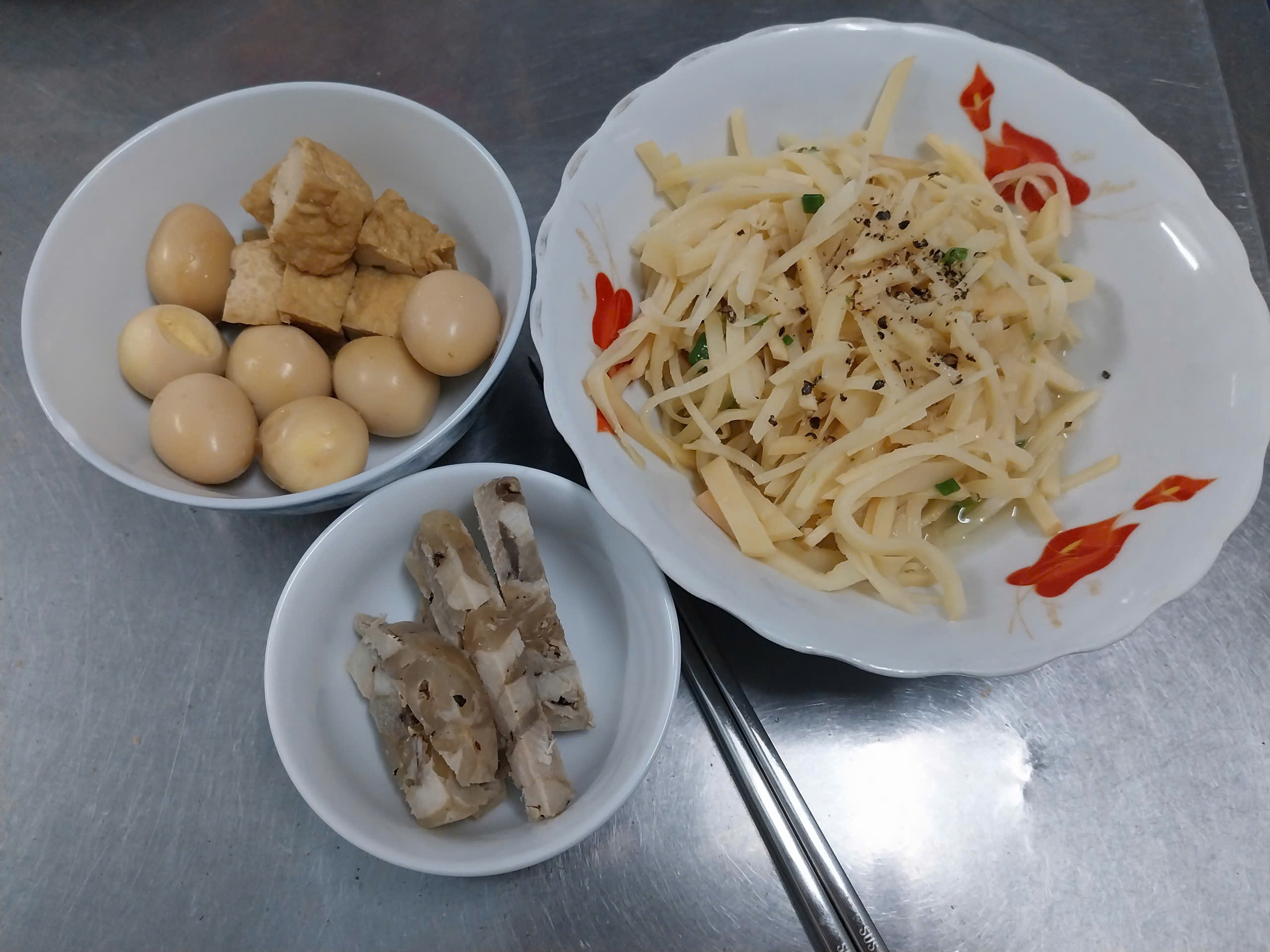 2) Trứng cút và đậu hủ chiên kho lạt (dùng đường ăn kiêng la hán quả).