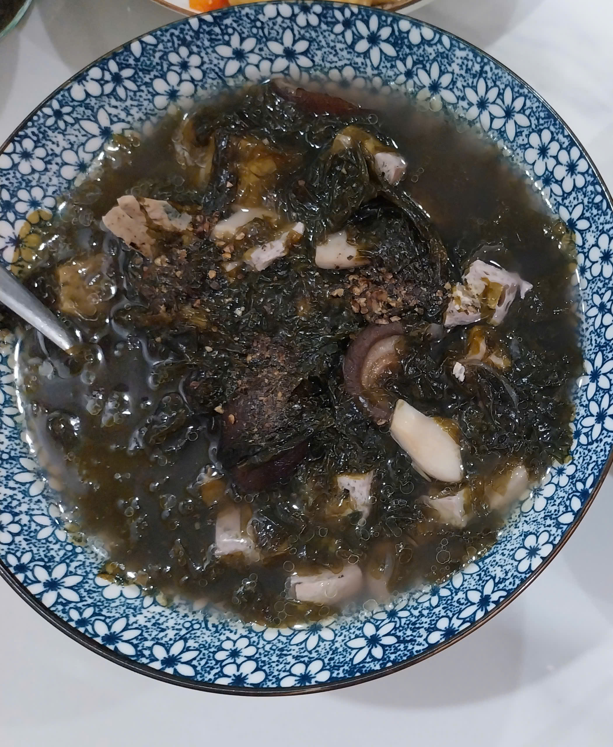 Canh rong biển với đậu hủ, nấm hương, tiêu và một chút muối.