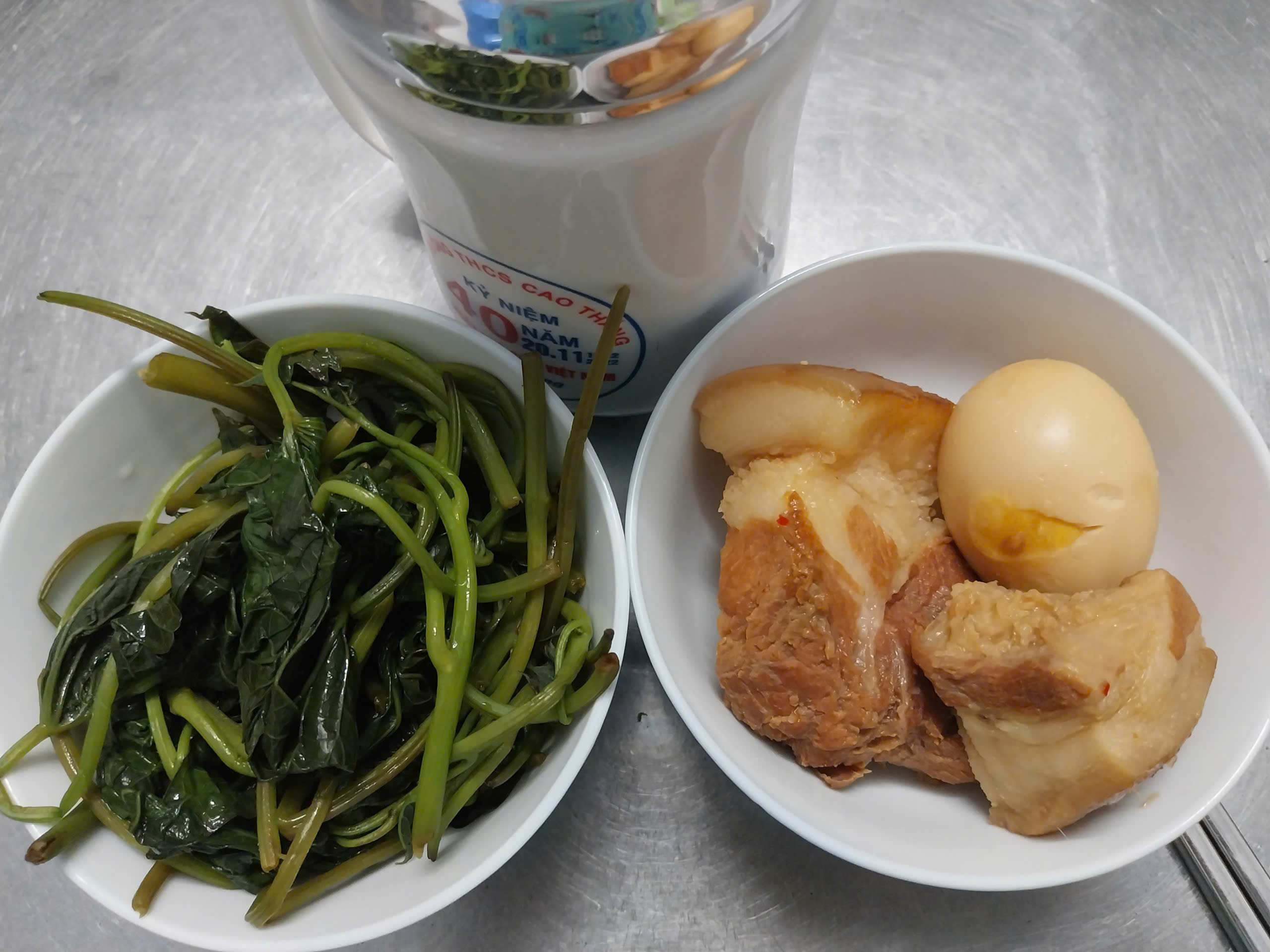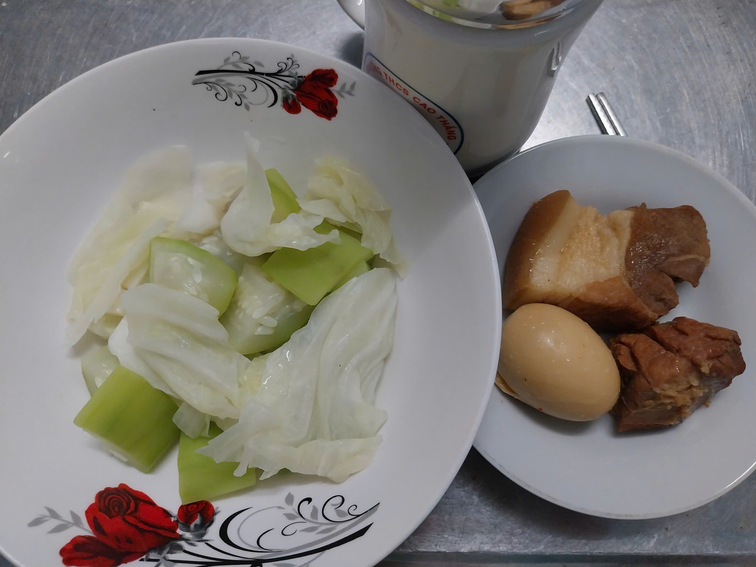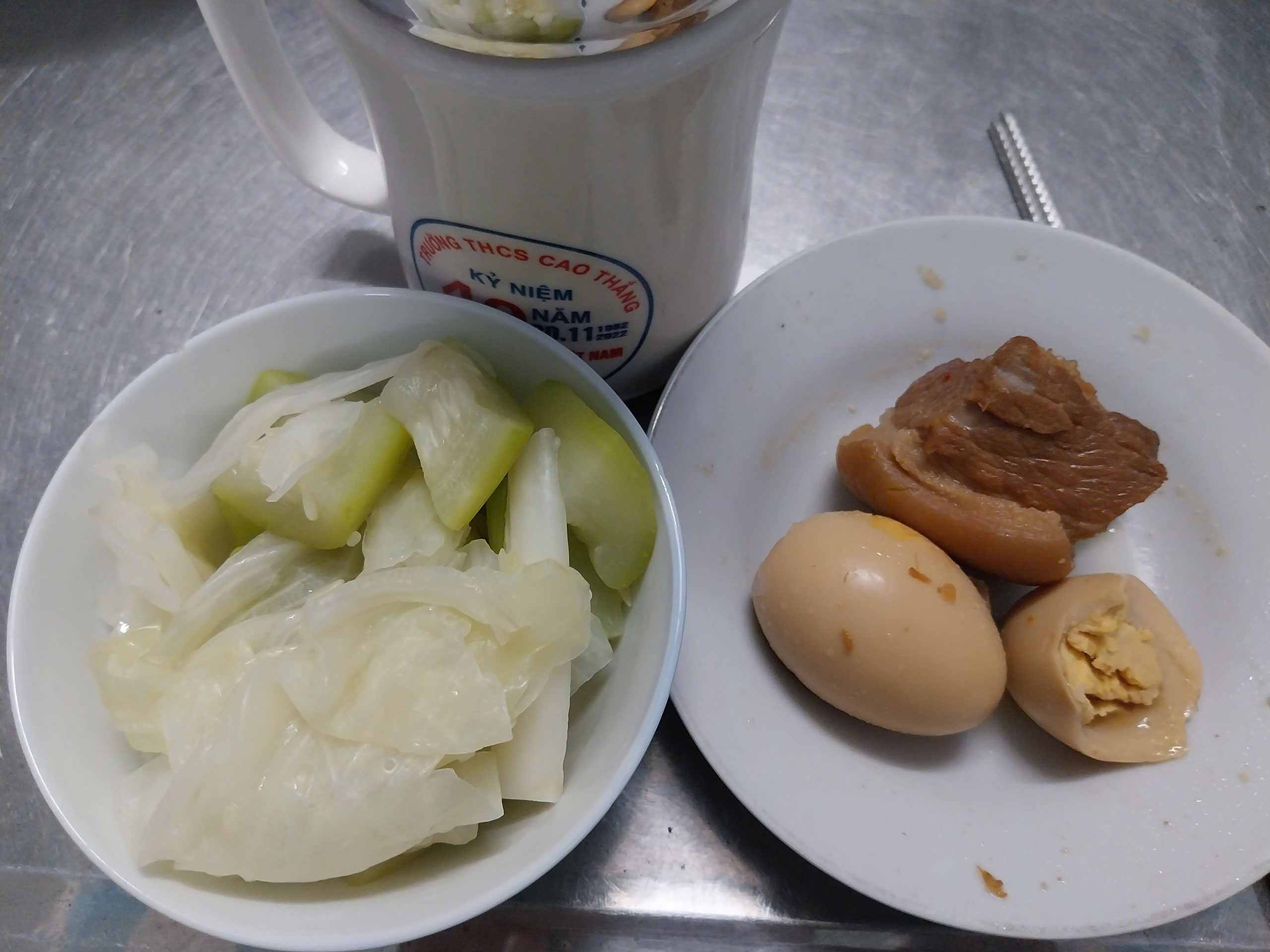2) Thịt ba rọi kho hột vịt (dùng đường ăn kiêng la hán quả và muối).