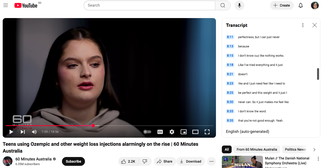 Nguồn: Teens using Ozempic and other weight loss injections alarmingly on the rise | 60 Minutes Australia
